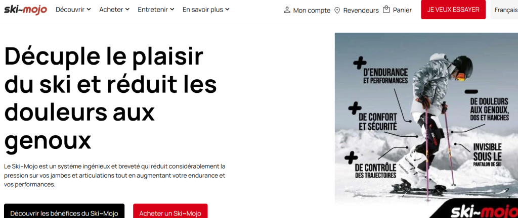 Le Ski~Mojo est un système ingénieux et breveté qui réduit considérablement la pression sur vos jambes et articulations tout en augmentant votre endurance et vos performances. Les puissants ressorts du Ski-Mojo permettent de revenir à l’époque où les cuisses n’étaient jamais fatiguées et le corps encore dans sa meilleure forme. Retrouvez les sensations de votre jeunesse ! Avec le Ski~Mojo, les trajectoires deviennent encore plus précises grâce à un mordant accru des skis. Et en poudreuse, ceux qui n’en sont pas équipés auront désormais du mal à tenir votre rythme. Le Ski~Mojo convient à toutes les morphologies d’adultes et ne nécessite seulement que quelques descentes pour s’y habituer, si bien que 90% des personnes l’ayant essayé se disent «bluffées et enthousiasmées ». Et vous, qu’en direz-vous ? Lien => Ski~Mojo | Site officiel | L’exosquelette qui améliore votre ski / Page de Présentation ci-dessous